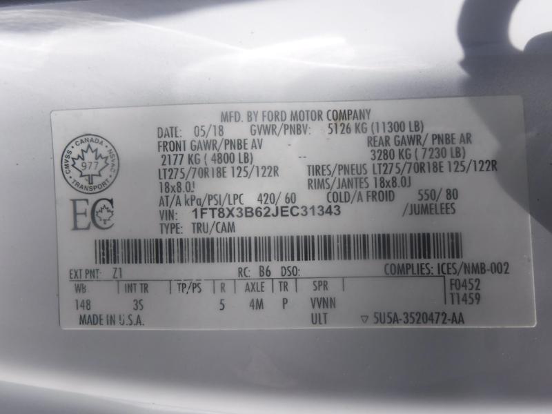 2018 Ford F-350 SD SuperCab XLT Short Box 4WD, 6.2L, 8 cylinder, 4 door, automatic, 4WD, 4-Wheel ABS, cruise control, air conditioning, AM/FM radio, bluetooth, trailer brakes, usb in, 12 volt in, adjustable foot pedals, power door locks, power windows, power mirrors, white exterior, grey interior, cloth.