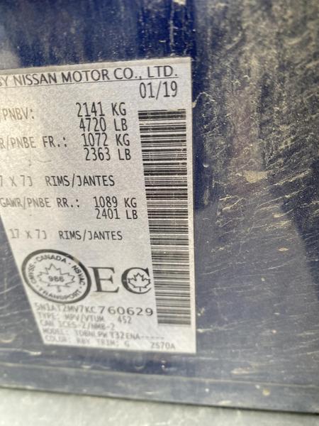 2019 Nissan Rogue S AWD, 2.5L, 4 cylinder, 4 door, automatic, AWD, 4-Wheel ABS, cruise control, air conditioning, power windows, power mirrors, blue exterior, black interior.