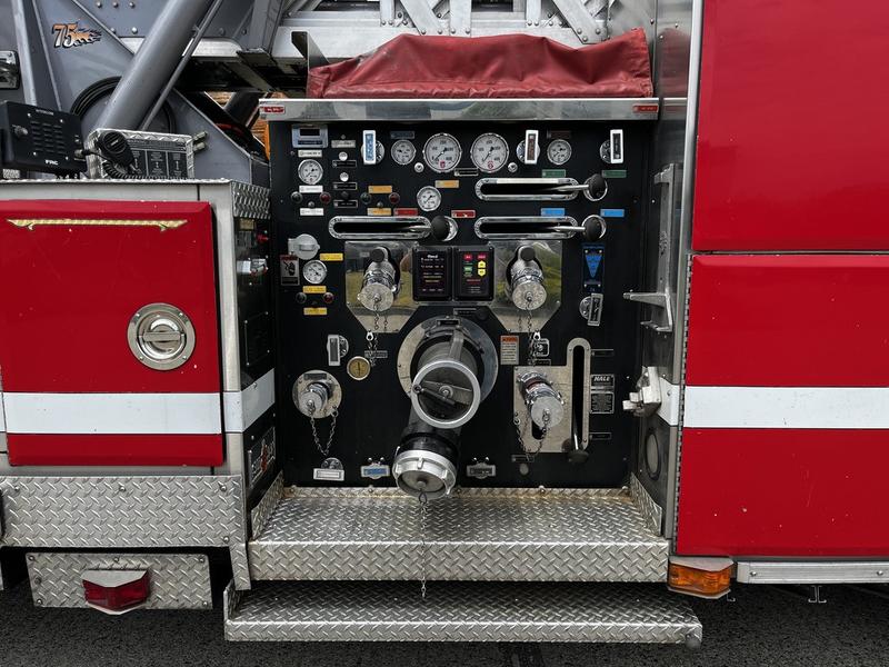 2002 Sutphen Monarch 5 Foot Aerial Pumper CAT Diesel Fire Truck, Diesel, 6 cylinder, 4 door, automatic, RWD, air conditioning, red exterior, black interior. Certification and Decal valid until November 2025.