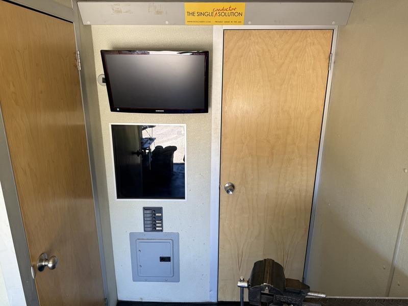 2013 Ford Econoline E450 16-Foot Cube Van with Video Pipeline Inspection Equipment, 6.8L, 10 cylinder, 2 door, RWD, air conditioning, AM/FM radio, white exterior, grey interior, vinyl. Traffic signaler, hose reel, air compressor, camera/tractor controller, office with ventilation, camera control, backup camera, Cummins 7HGJAE-2132L gas generator 120V 7kW.