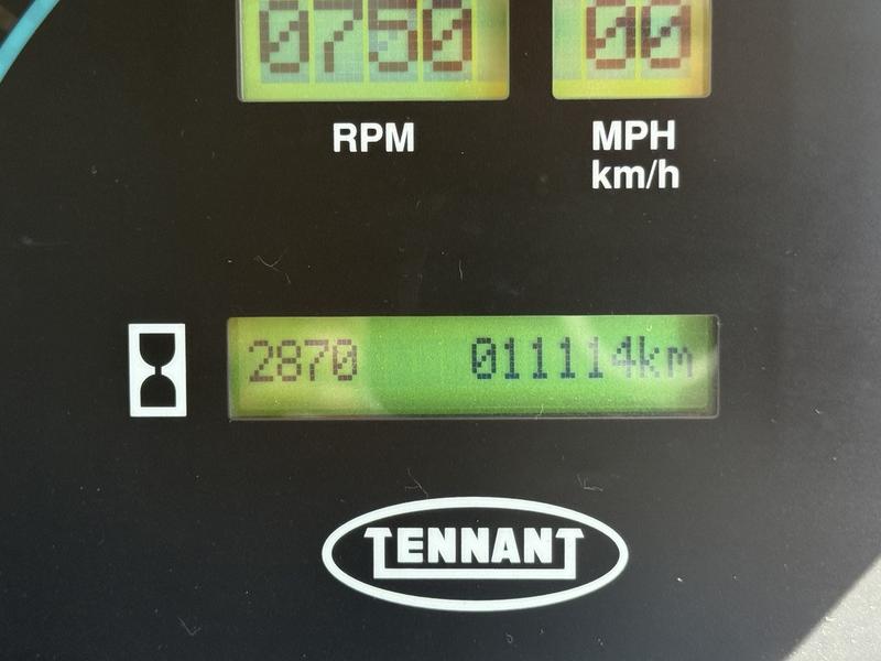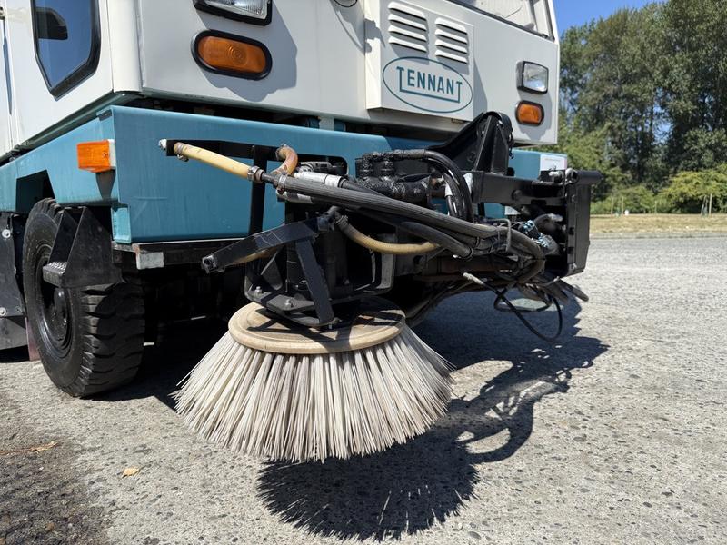2001 Tennant 830-II Street Sweeper Diesel, 4 cylinder, 2 door, automatic, white exterior, black interior, cloth. 3.4 cubic yds, main broom 51 in 1295 mm, right side brush 69 in 1750 mm, dual side brushes 87 in 2210 mm, auxiliary brush 126 in 3200 mm, Hopper volume 3.4 yds3 2600 L, 20,000lbs GVW.