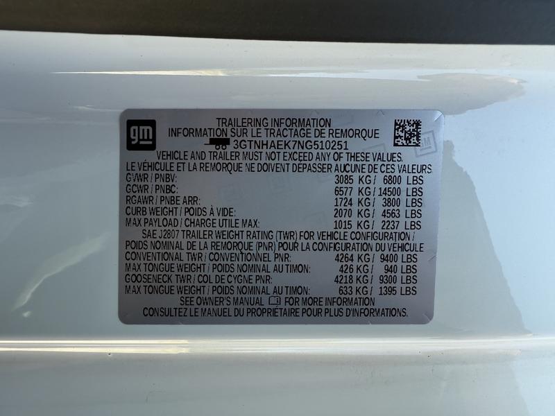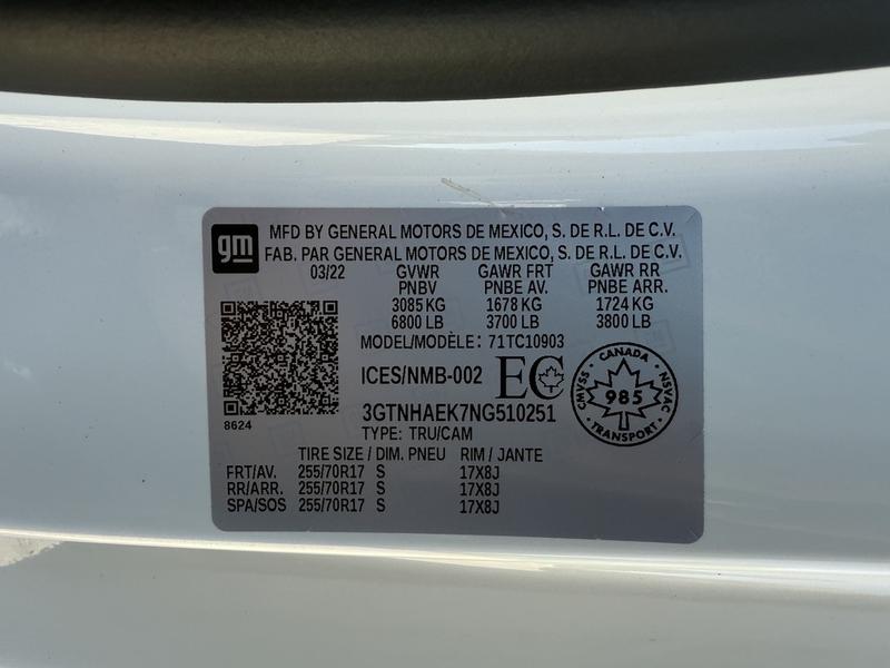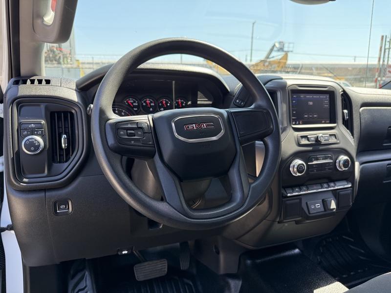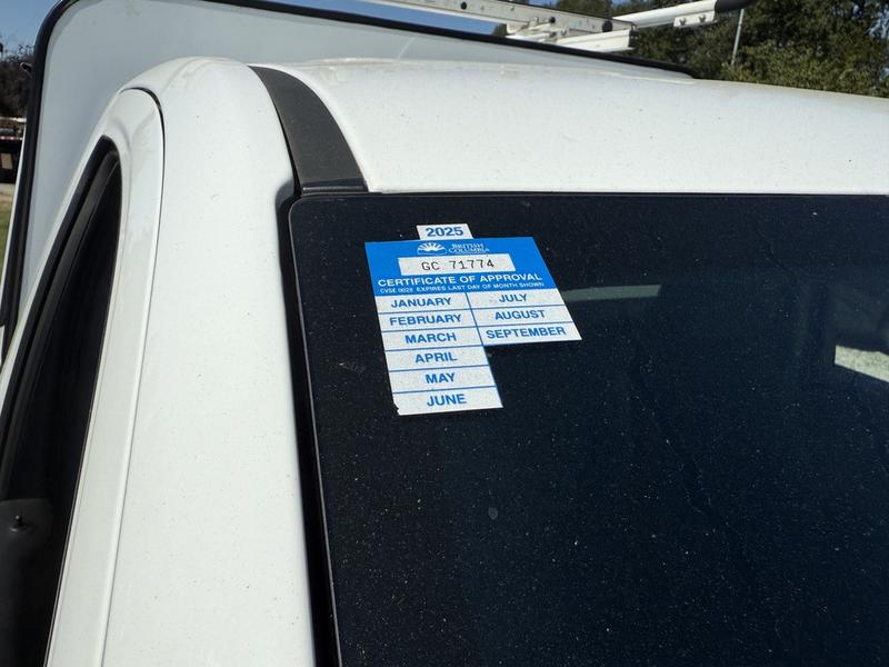 2022 GMC Sierra 1500 2WD with Service Canopy, 2.7L, 4 cylinder, 2 door, automatic, RWD, 4-Wheel ABS, cruise control, air conditioning, AM/FM radio, power door locks, power windows, power mirrors, white exterior, black interior, cloth. Backup camera, certification and decal valid until September 2025.