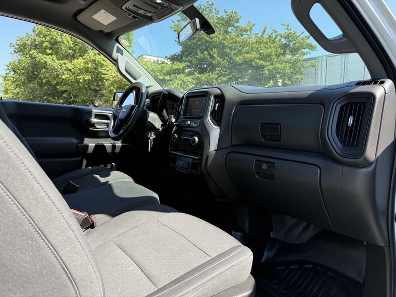 2021 Chevrolet Silverado 1500 Work Truck 2WD, 5.3L, 8 cylinder, 2 door, automatic, RWD, 4-Wheel ABS, cruise control, air conditioning, AM/FM radio, power door locks, power windows, power mirrors, white exterior, grey interior, cloth, backup camera.