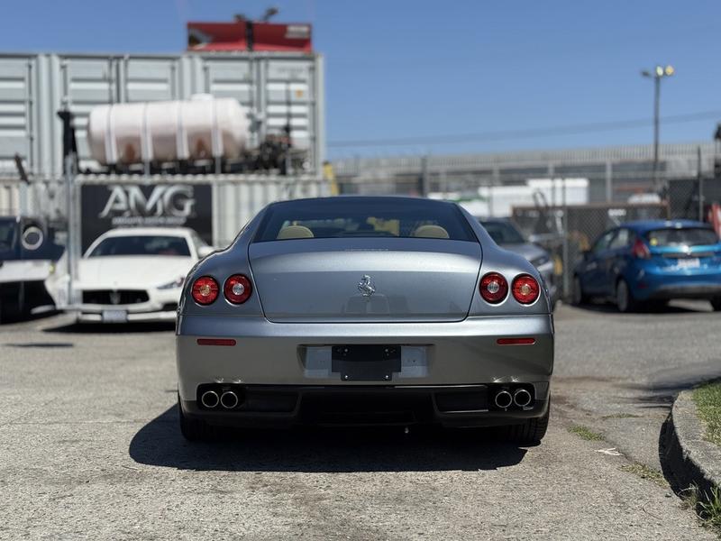 2005 Ferrari 612 Scaglietti Pininfarina V12, 5.7L, 12 cylinder, 2 door, automatic, RWD, air conditioning, AM/FM radio, power door locks, power windows, power mirrors, silver exterior, tan interior, leather. 1 of 3,025 produced, 320 km/h (199 mph) top speed, 0–100 km/h (62 mph) in 4 seconds, Automated F1 Transmission F1A, 540 horsepower and 434 lb-ft of torque, paddle shifters, Pininfarina design, power-adjustable seats. BC luxury tax applies to this vehicle.