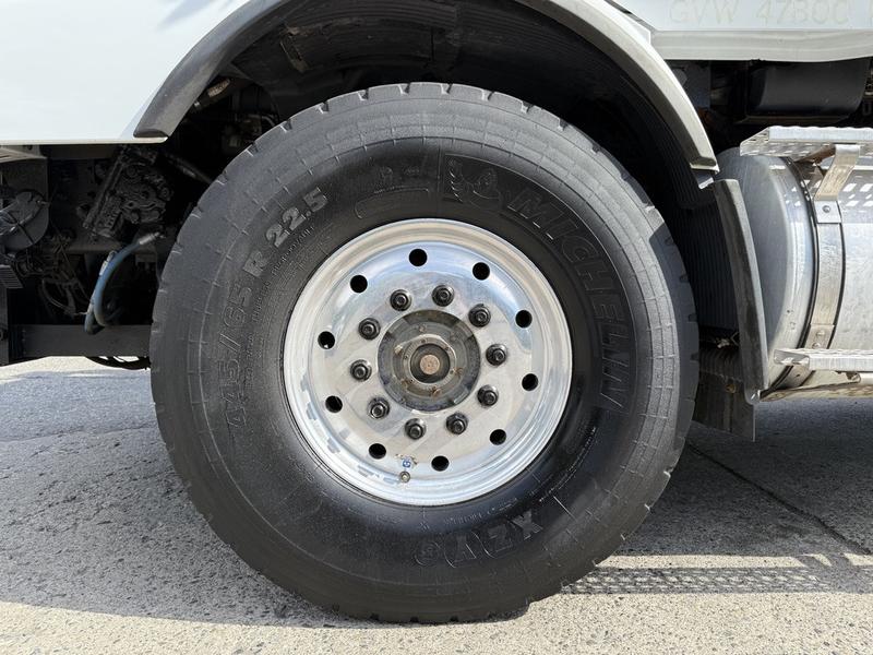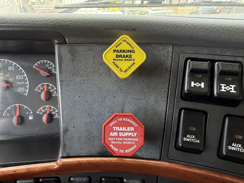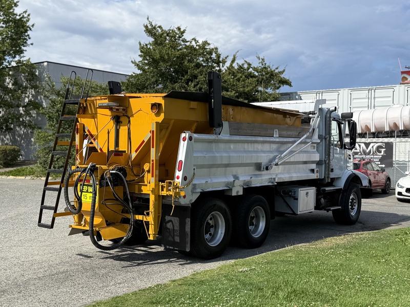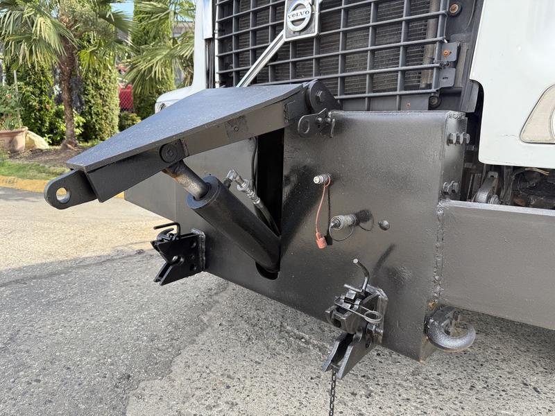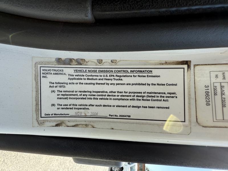 2005 Volvo VND 18-Speed Diesel Dump Truck with Sander and Plow, 12.1L, 6 cylinder, 2 door, manual, 6X4, white exterior, grey interior, cloth. PTO, sander, trailer brake, dump suspension, Eaton 18-speed, pintle hitch, diff lock, exhaust brake. Certification and decal valid until October 2025.