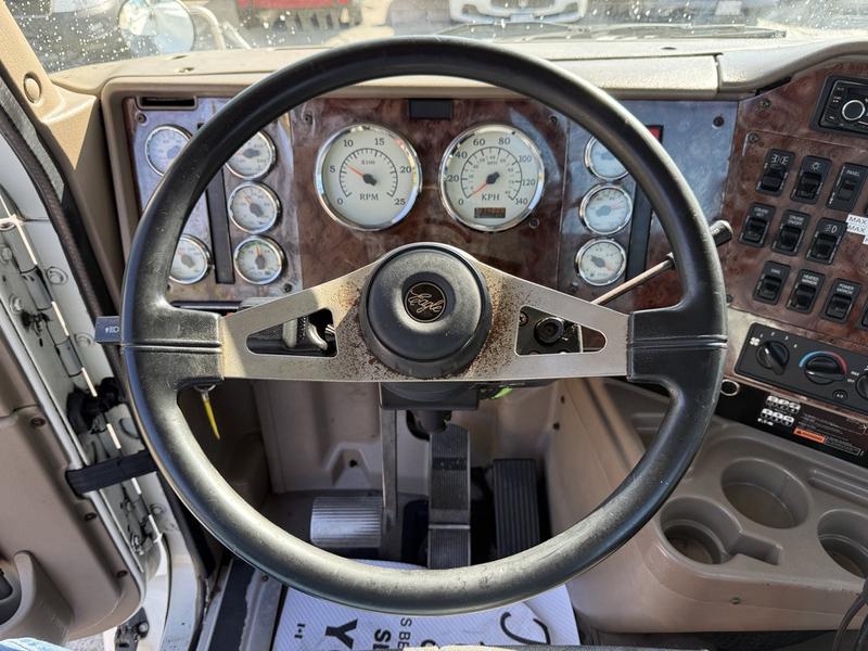 2007 International 9200i Tandem Day Cab Semi Truck with Cummins Diesel and 10-Speed, 10.8L, 6 cylinder, 2 door, manual, 6X4, cruise control, air conditioning, white exterior, beige interior, cloth. 10-speed Eaton Fuller, PTO, air suspension, max capacity 29,492 kg / 65,000 lbs. Certification and decal valid until January 2026.