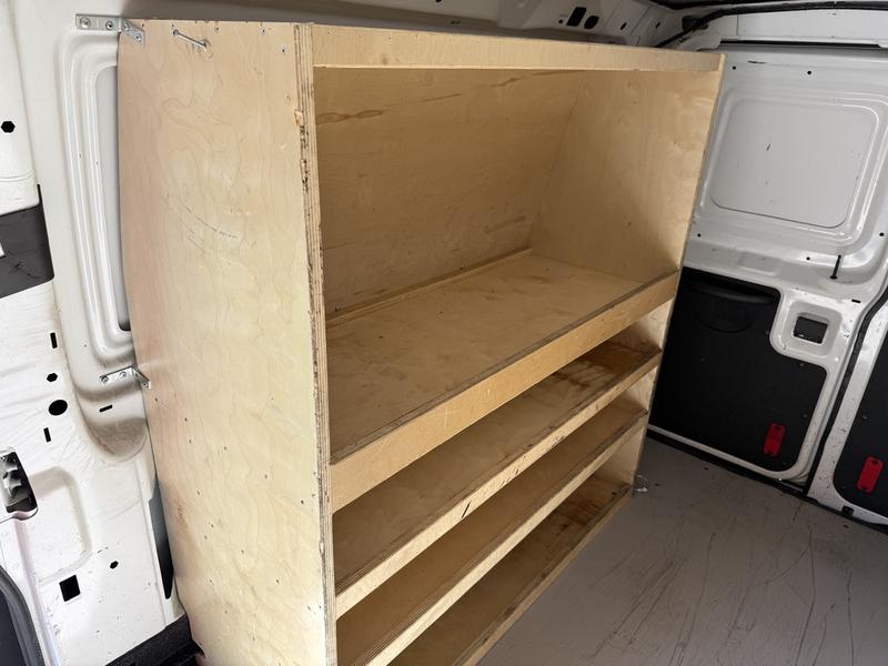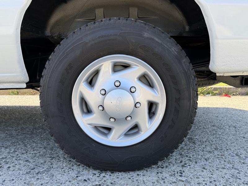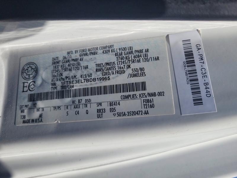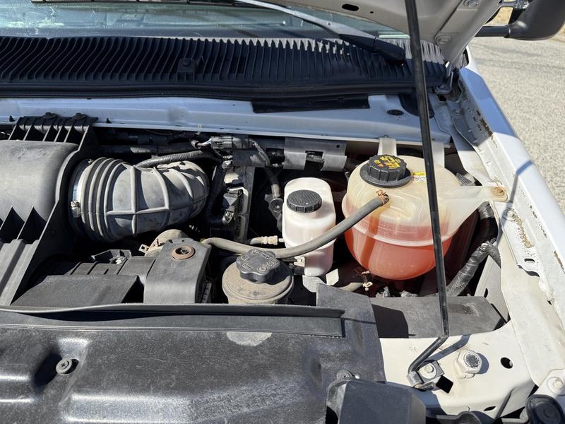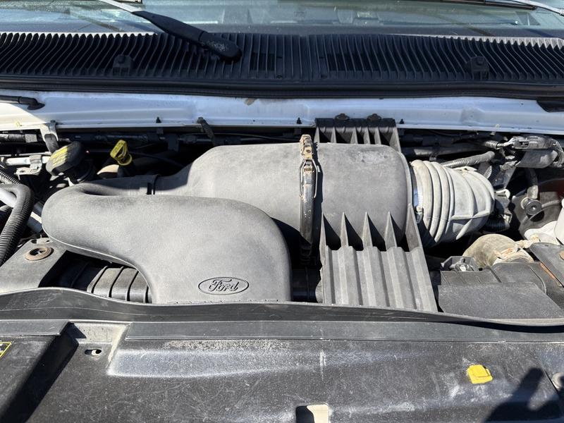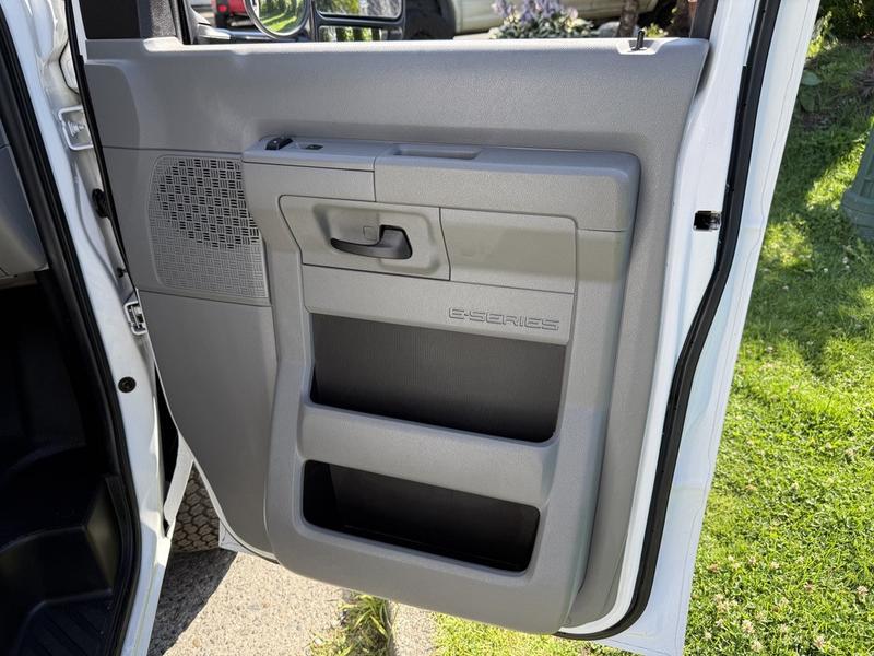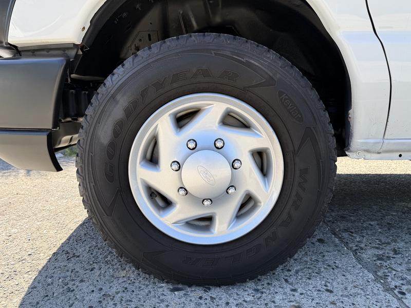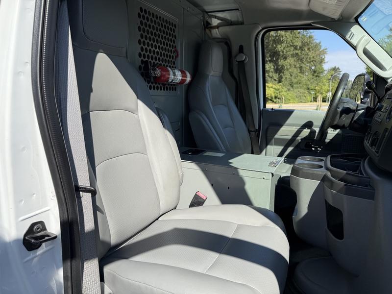 2011 Ford Econoline E-350 Super Duty Cargo Van with Shelving & Ladder Rack, 5.4L, 8 cylinder, 2 door, automatic, RWD, 4-Wheel ABS, air conditioning, AM/FM radio, CD player, power door locks, power windows, power mirrors, white exterior, grey interior, vinyl. Traffic signaler, wooden shelving, trailer hitch, trailer brake.