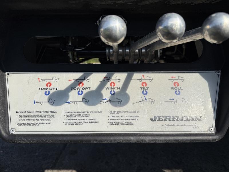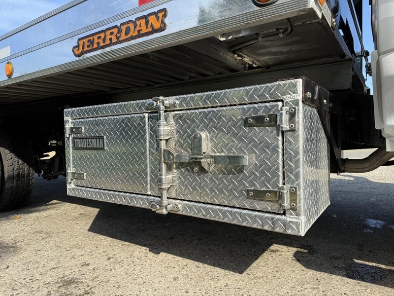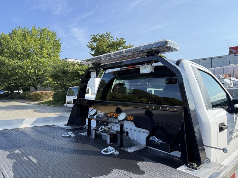 2022 Ford F600 XLT 20-Foot Roll Off Flatdeck Tow Truck 4x4, 7.3L, 8 cylinder, 2 door, automatic, 4X4, cruise control, air conditioning, AM/FM radio, power door locks, power windows, power mirrors, white exterior, grey interior, cloth. Jerr Dan 20-foot deck, PTO, trailer package, backup camera, Carplay, 3,500 lb wheel lift, 8,000 lb winch. Certification and decal valid until July 2026.