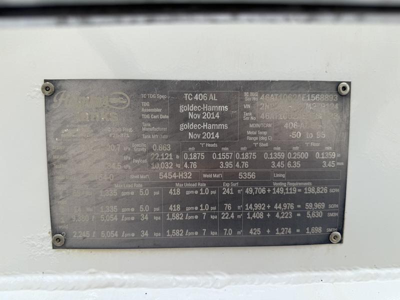 2015 Peterbilt 337 11,620 Litre Fuel Truck Diesel with Air Brakes, 8.9L, 6 cylinder, 2 door, automatic, 4X2, white exterior, black interior, cloth. 11,620 Litre capacity / 2 compartments (5,810 Litre each compartment). Certification and decal valid until July 2026.