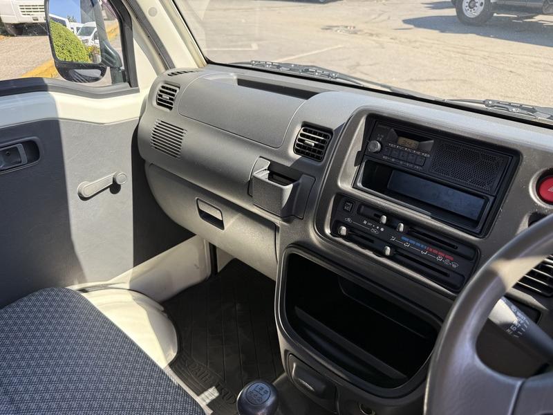 2009 Daihatsu Hijet DM 4x4 Kei Pickup Truck right Hand Drive, 3 Cylinder, 3 cylinder, 2 door, manual, 4WD, air conditioning, AM/FM radio, white exterior, grey interior.
