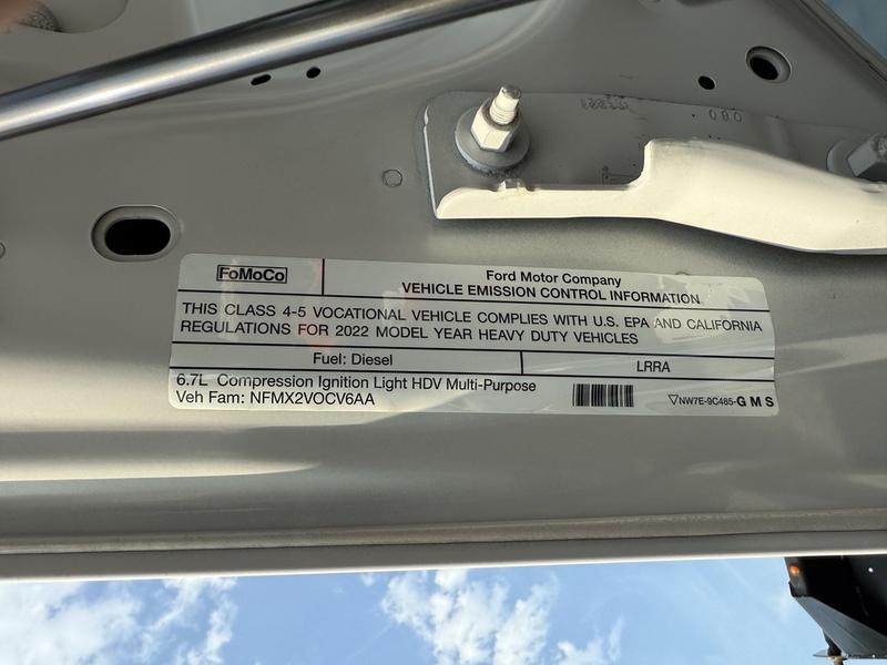 2022 Ford F-550 XL 4X4 12-Foot Diesel Dump Truck, 6.7L, 8 cylinder, 2 door, automatic, 4WD, cruise control, air conditioning, AM/FM radio, white exterior, grey interior, vinyl. Dump box dimensions: 12' L x 7'3" W x 1'7" H. Overall measurements: 268" L x 105" W x 93" H. Certification and decal valid until August 2026.