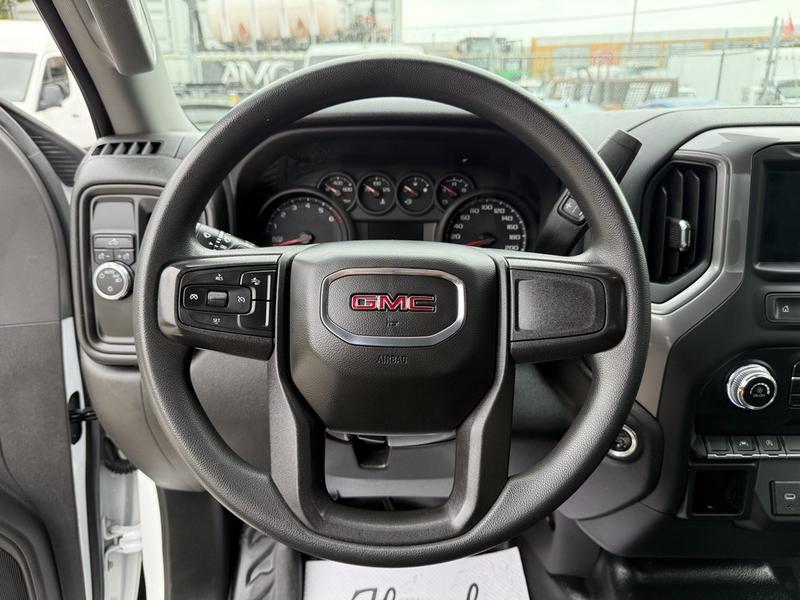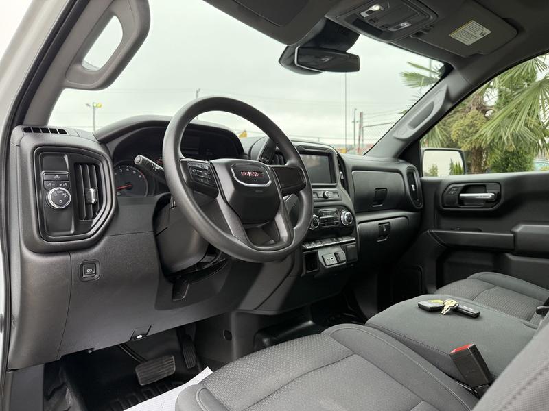 2022 GMC Sierra 1500 Regular Cab 2WD with Service Canopy, 2.7L, 4 cylinder, 2 door, automatic, RWD, 4-Wheel ABS, cruise control, air conditioning, AM/FM radio, power door locks, power windows, power mirrors, white exterior, black interior, cloth. Backup camera, push button start. Overall vehicle measurements: 211" L x 81" W x 97" H. Certification and decal valid until September 2026.