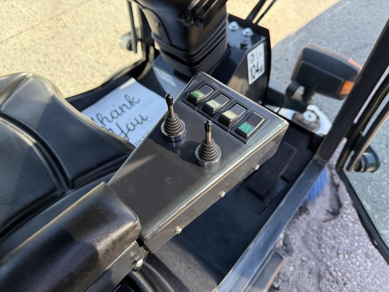 2017 Madvac LS100 Compact Sweeper, 3.0L, 2 door, automatic, FWD, white exterior, black interior, vinyl. Equipped with a Kubota D1105T turbo motor producing 31.5 HP, front-wheel steering, dual front sweepers, 30-inch water gauge, battery switch, backup camera, and cup holders. 981 hours. Overall vehicle measurements: 147" L x 43" W x 78" H.