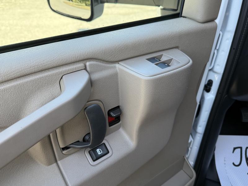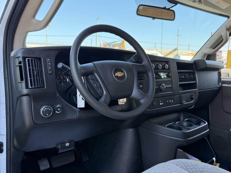 2024 Chevrolet Express 4500 16-Foot Cube Van, 6.6L, 8 cylinder, 3 door, automatic, RWD, cruise control, air conditioning, AM/FM radio, power door locks, power windows, power mirrors, white exterior, grey interior, cloth. The inside box dimensions are 16 feet long, 7 feet 8 inches wide, and 7 feet 3 inches high. Overall vehicle dimensions are 25 feet 4 inches long, 8 feet wide, and 10 feet 2 inches high.