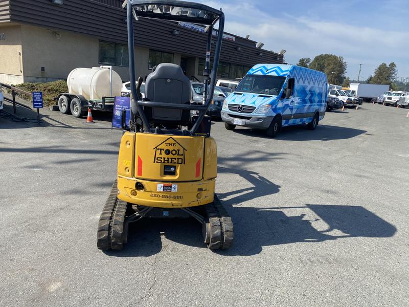 2022 John Deere 17G Excavator Diesel, yellow exterior, black interior excavator features a 14.5-horsepower Yanmar engine, a maximum digging depth of 7 ft 2 in., and an operating weight of approximately 3,790 lbs. Its key features include a variable-width undercarriage that can adjust from 39 inches to 50 inches for tight access and stability, a reduced tail swing for confined spaces, and a durable hydraulic system.