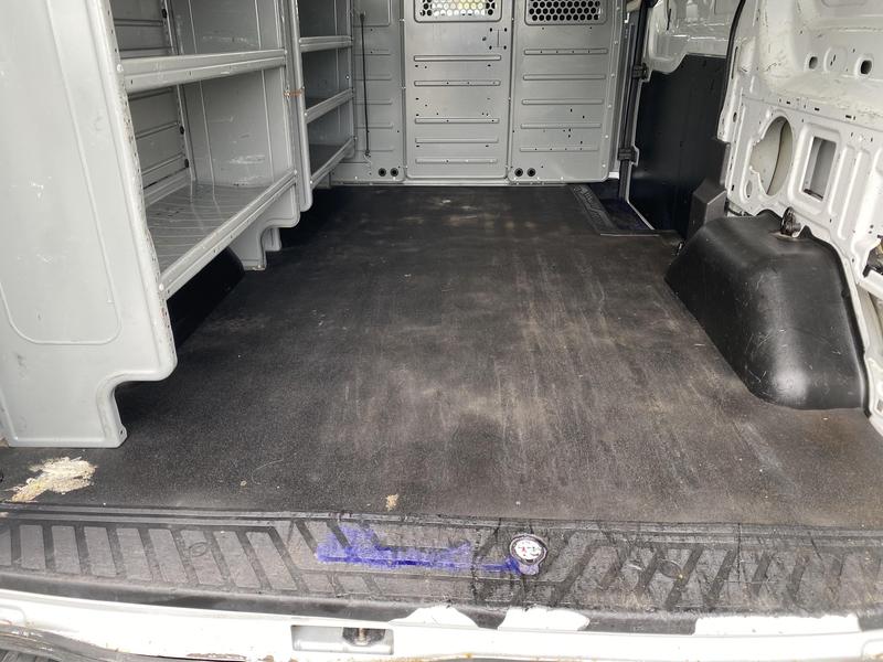 2017 Ford Transit 150 Van Low Roof Cargo Van Rear Shelving 130-inch Wheelbase, 3.7L, 6 cylinder, 2 door, automatic, RWD, 4-Wheel ABS, AM/FM radio, power door locks, power windows, white exterior, gray interior, cloth.