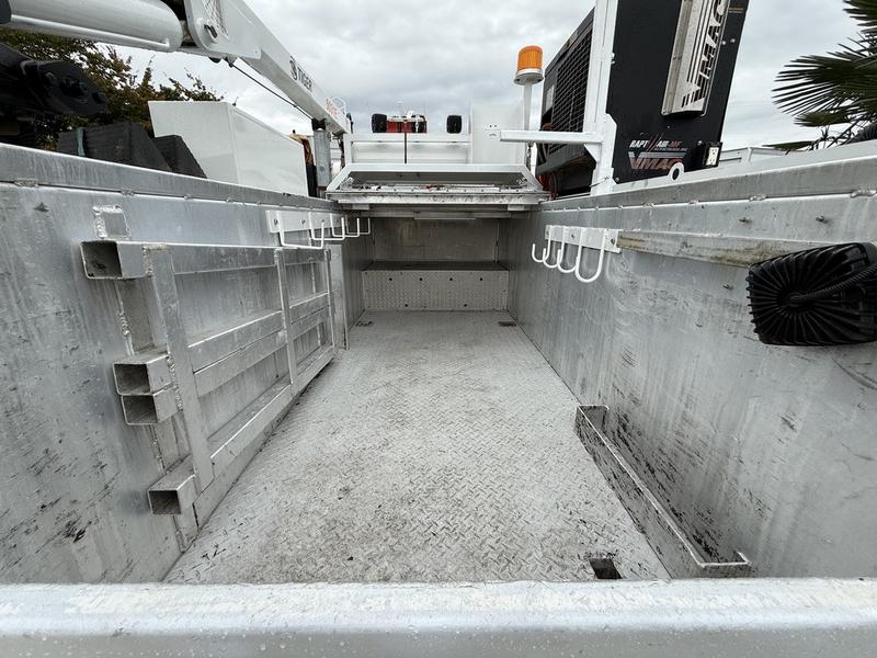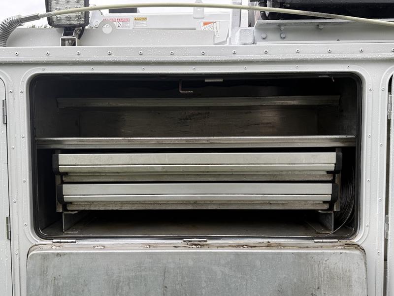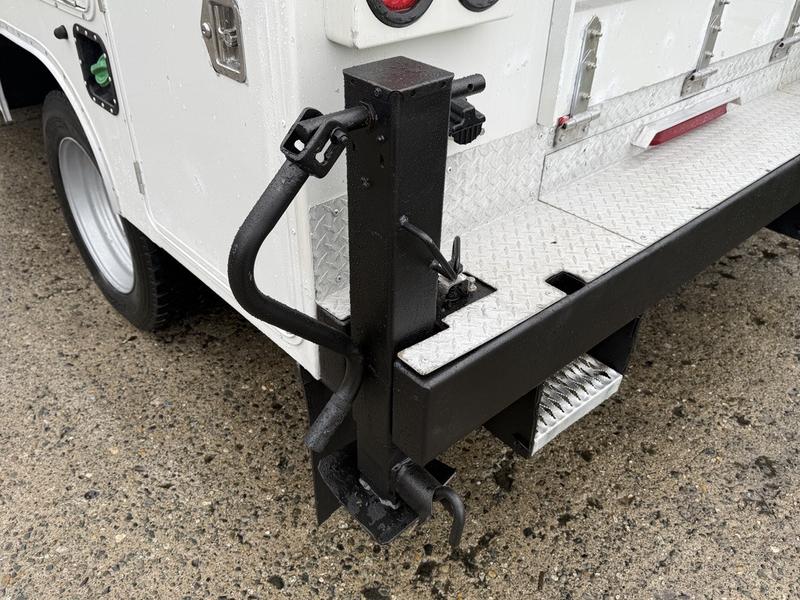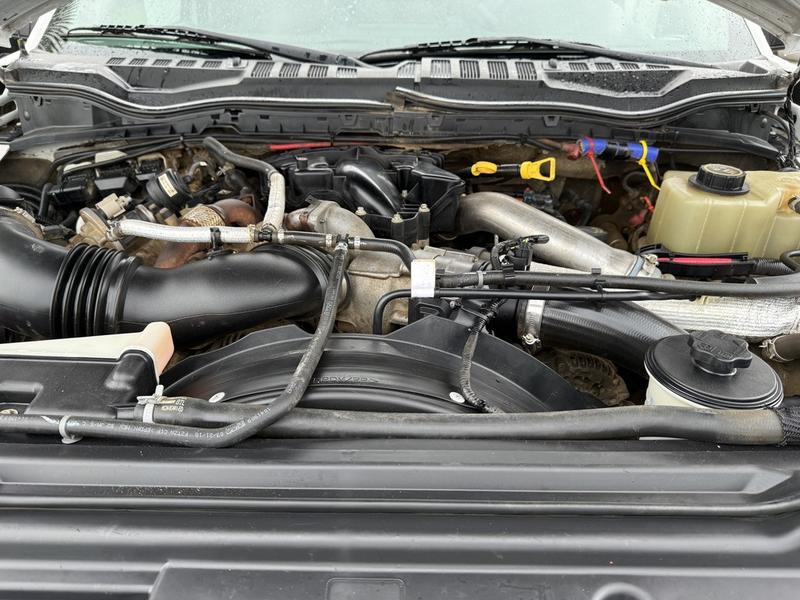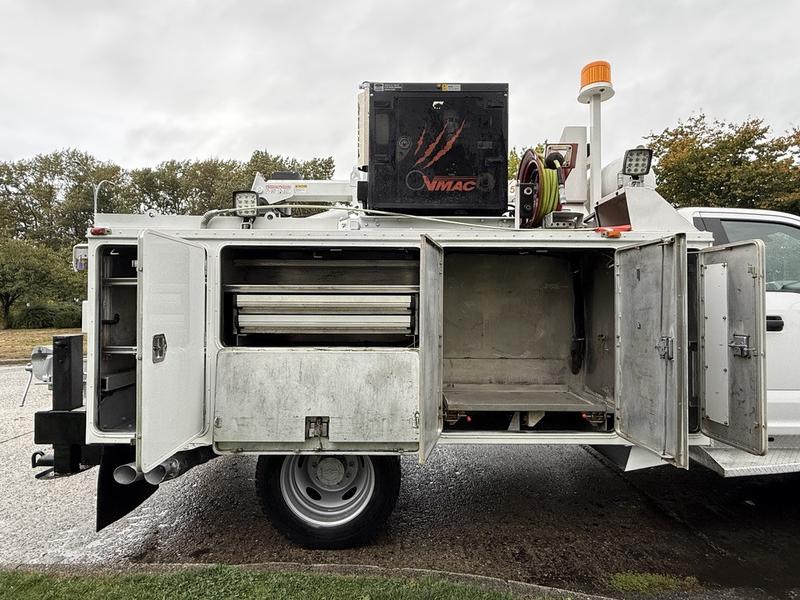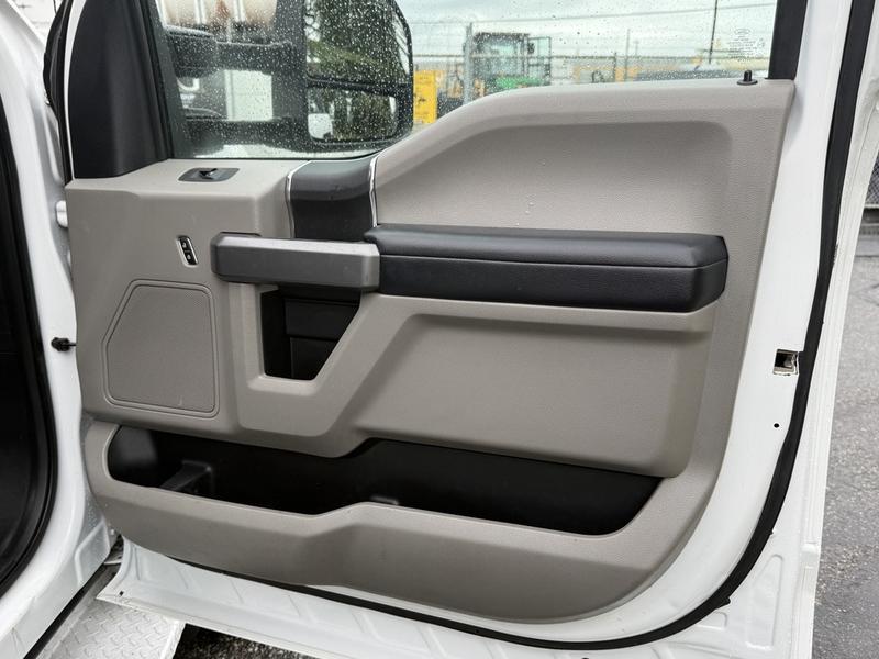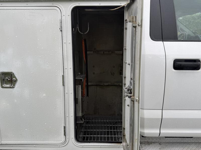 2018 Ford F-550 XLT Super Duty 4x4 Diesel Service Truck equipped with a Power Stroke 6.7L V8 engine, automatic transmission, and four-wheel drive. This heavy-duty work truck features a full service box with multiple storage compartments, a built-in compressor, and a Tiger Crane—making it ideal for field repairs, mobile servicing, and heavy-duty operations. Interior amenities include cruise control, air conditioning, AM/FM radio, power windows, power locks, and power mirrors. Finished in white with a grey cloth interior. Overall vehicle dimensions are 23 feet 7 inches long, 8 feet 8 inches wide, and 10 feet high.