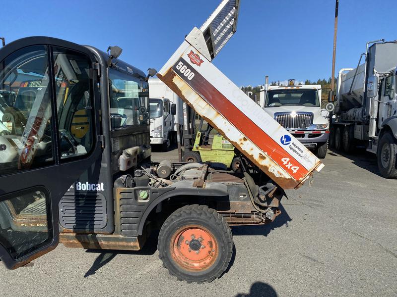 2015 Bobcat 5600 4x4 front end loader, 2,919.00 HOURS (NOT VERIFIED), DIESEL COMES WITH REGISTRATION, RUBBER TIRES, IGNITION CODE XXXX, 2DR LOADER WITH HYDRAULIC DUMP BED, HYDRAULIC BUCKET, ENCLOSED CAB, BUCKET LENGTH 5 FEET , ALL WHEEL STEERING, AIR CONDITIONING, All measurements and specifications are considered to be accurate but are not guaranteed, this listing is a former municipality asset and comes with BC Registration.