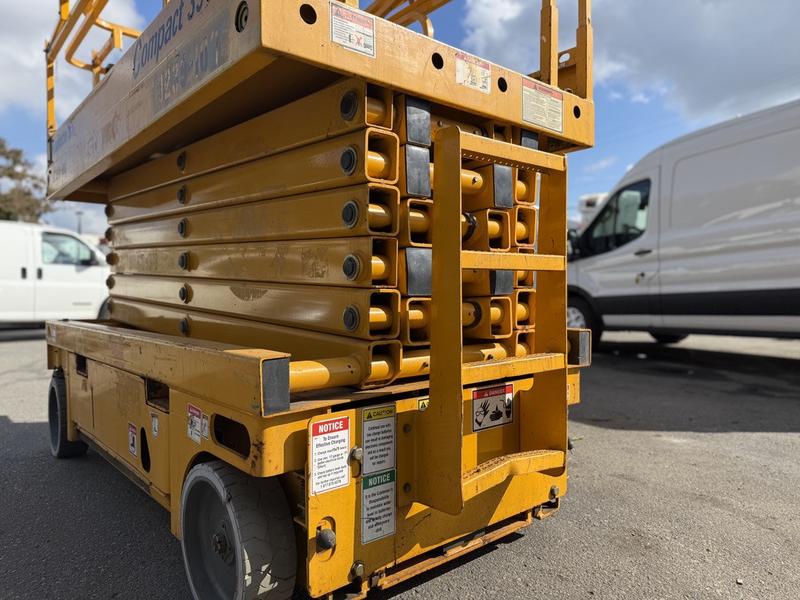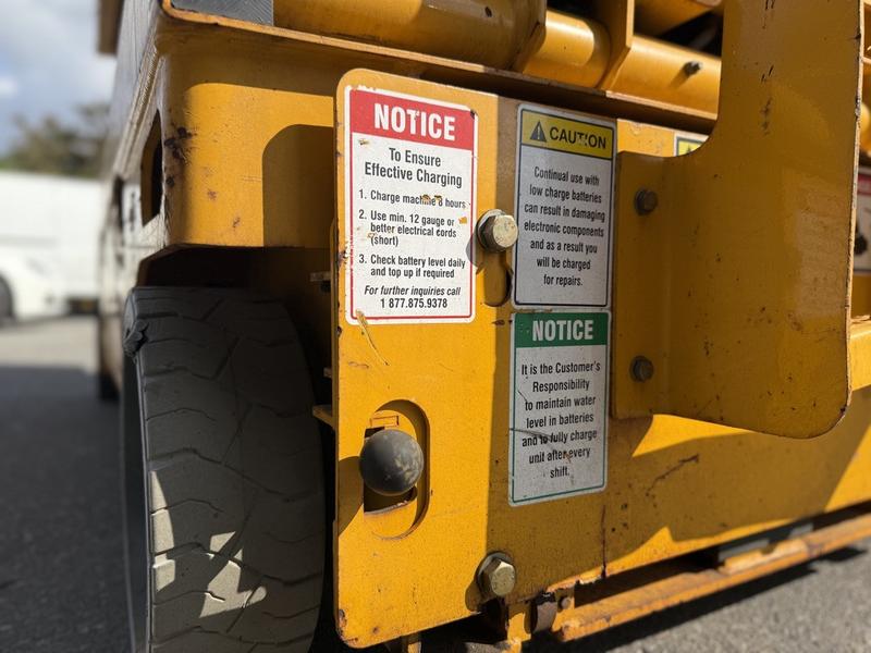 2013 Haulotte Compact 3947E electric scissor lift offering a working height of 44 ft 11 in and a platform height of 38 ft 11 in. Powered by a 24V electric system and rated for a maximum lift capacity of 770 lb. Platform extends to 10 ft 7 in by 3 ft 11 in, with an overall width of 3 ft 11 in and overall length of 8 ft 2 in. Operating weight of 7,236 lb. Finished in yellow. Ideal for indoor and outdoor maintenance, installation, or construction tasks.