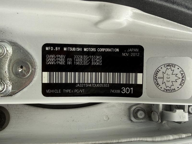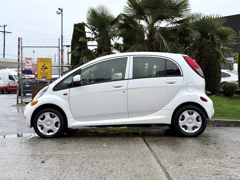 2013 Mitsubishi I-MiEV SE 5-door electric hatchback with rear-wheel drive and automatic transmission. Offers up to 100 km of range per charge and supports quick charging up to 80% in as little as 30 minutes. Features include 4-wheel ABS, air conditioning, AM/FM radio, CD player, power windows, power door locks, and power mirrors. Finished in white with a beige cloth interior. A compact, efficient option for urban commuting.