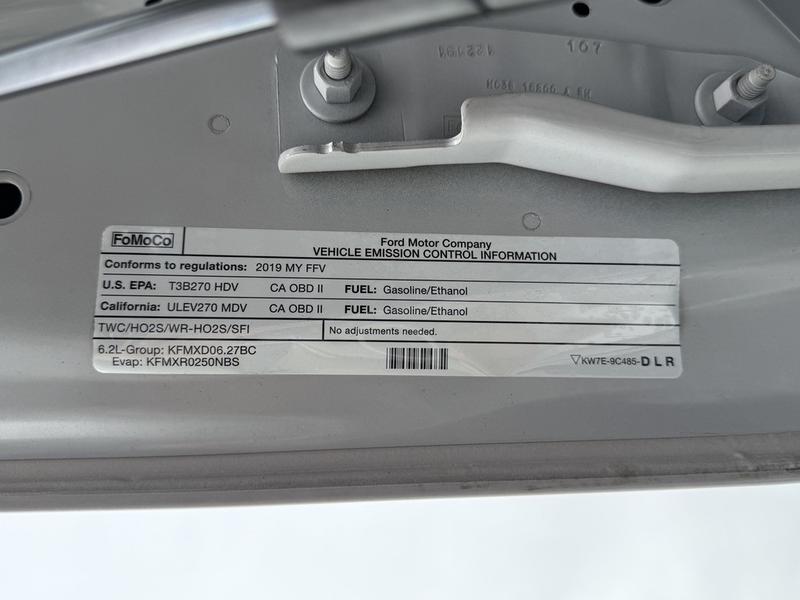 This 2019 Ford F-350 XL Super Duty 4x4 flat deck truck is equipped with a 6.2L 8-cylinder engine, automatic transmission and four-wheel drive, and features a white exterior with a grey cloth interior. It includes a 9-foot deck, a Waltco lift gate with a 2,000 lb lift capacity, tow package, 4x4 gear selector, beacon light, work lights, storage compartment, auxiliary switches, AM/FM radio, 12V and USB input, air conditioning and heat. The lift gate measures approximately 3 feet 11 inches long and 6 feet 9 inches wide, while the deck area is about 9 feet long, 6 feet 8 inches wide and 3 feet 4 inches high. Overall vehicle dimensions are approximately 20 feet 4 inches long, 7 feet 1 inch wide and 7 feet 4 inches high, with a GVWR of 4,672 kg (10,300 lb).