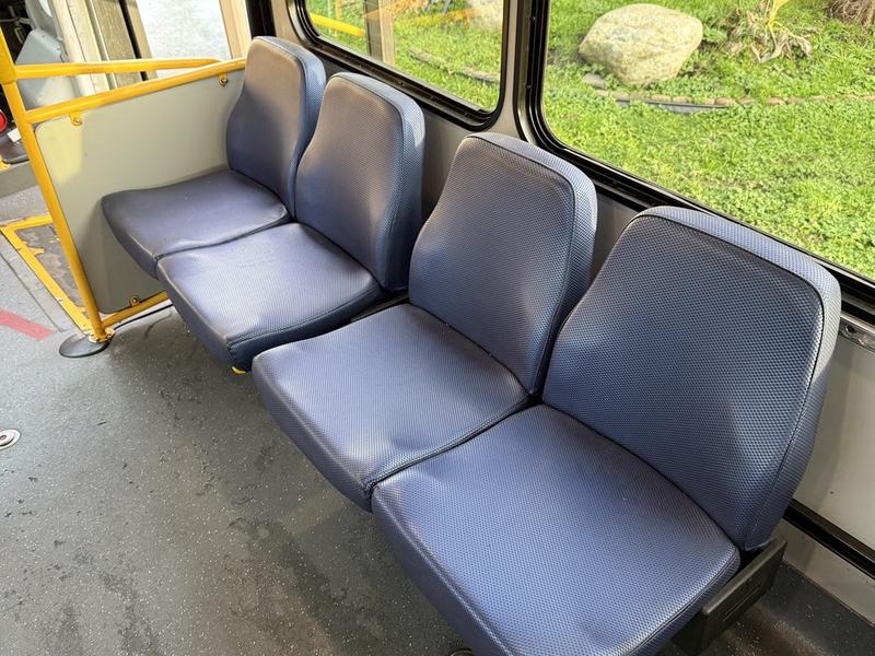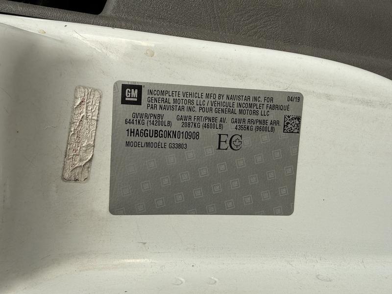This 2019 Chevrolet Express 4500 22-passenger bus is equipped with a 6.0L 8-cylinder engine, automatic transmission and rear-wheel drive, and features a grey exterior with a blue vinyl interior. It includes seating for 22 including the driver, a wheelchair ramp, master body switch, cruise control, air conditioning and heat, cup holders and an AM/FM radio. The bus measures approximately 20 feet 3 inches long, 6 feet 5 inches wide and 7 feet high, with a GVWR of 6,441 kg (14,200 lb).
