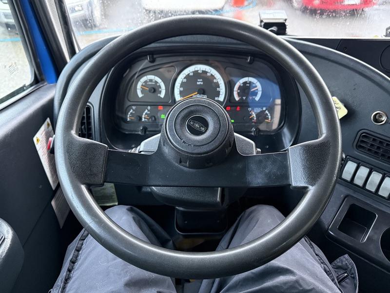 This 2017 Autocar Xpert recycling dump truck is powered by a Cummins ISB 6.7L 6-cylinder engine paired with an Allison 3500 6-speed automatic transmission and rear-wheel drive, and features a blue exterior with a black cloth interior. Equipment includes PTO, air brakes, and dual driving controls for both left-hand and right-hand operation. The dump box measures approximately 19 feet 5 inches long, 8 feet wide and 6 feet 6 inches high. Overall vehicle dimensions are about 32 feet 7 inches long, 8 feet 2 inches wide and 10 feet 1 inch high, with a GVWR of 15,875 kg (35,000 lb).