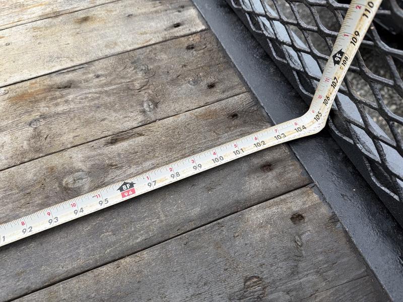 This 2016 Ford F-350 XLT SuperCab 4x4 flat deck truck is equipped with a 6.2L 8-cylinder engine, automatic transmission and four-wheel drive, and features a white exterior with a grey cloth interior. It includes a 9-foot flat deck measuring approximately 6 feet 8 inches wide, 4x4 gear selector, work switches, tow package, trailer brake, 12V input, cruise control, air conditioning and heat, and an AM/FM radio with CD player, along with power windows, power door locks and power mirrors. The truck measures about 20 feet 10 inches long, 7 feet 2 inches wide and 7 feet 3 inches high, with a GVWR of 5,035 kg (11,100 lb).