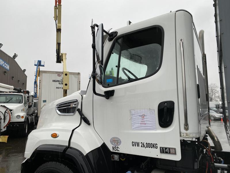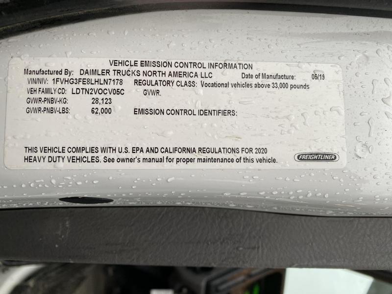 2020 Freightliner 114SD Cement Mixture Air Brakes Cummins Engine, 2 door, automatic, white exterior.