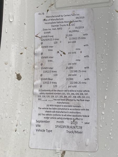 2020 Freightliner 114SD Cement Mixture Air Brakes Cummins Engine