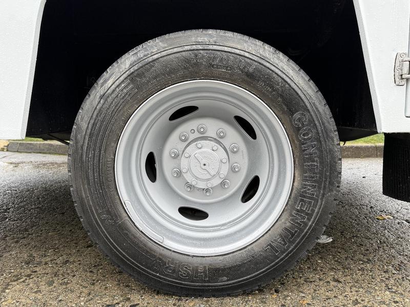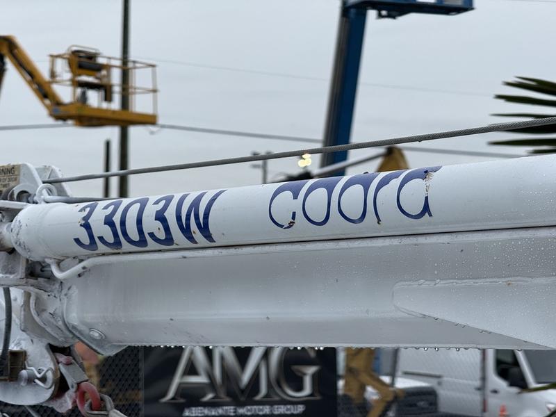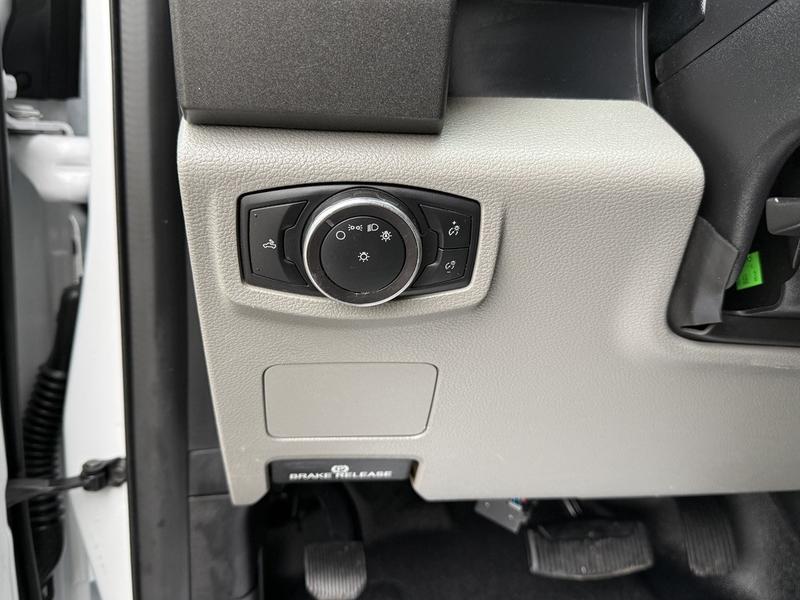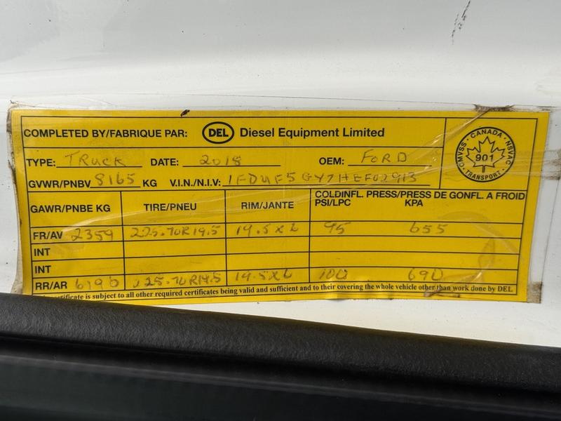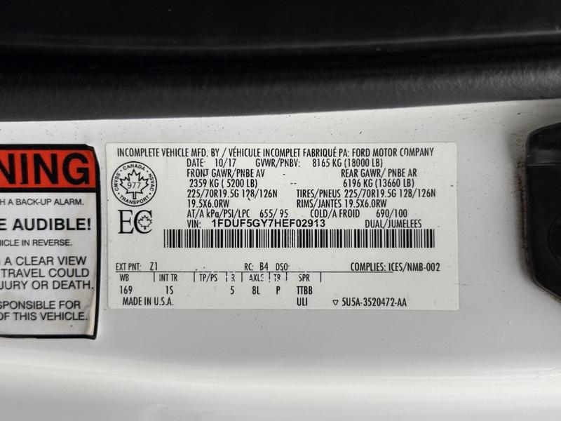 This 2017 Ford F-550 XL Super Duty service truck is equipped with a 6.8L 10-cylinder engine, automatic transmission, and rear-wheel drive. It features a Brutus service box with multiple storage compartments, a tool box, and a Maxilift Cobra 3303W crane offering an 18-foot maximum reach and over 1,650 lb lifting capacity with double line. Additional equipment includes a Honda GX270, beacon light, AUX switches, tow mode, trailer brake, USB input, air conditioning and heat, cruise control, and an AM/FM radio. Finished in white with a grey cloth interior, the truck measures 22 feet 2 inches long, 8 feet 1 inch wide, and 8 feet 5 inches high, with a GVWR of 8,165 kg (18,000 lb).