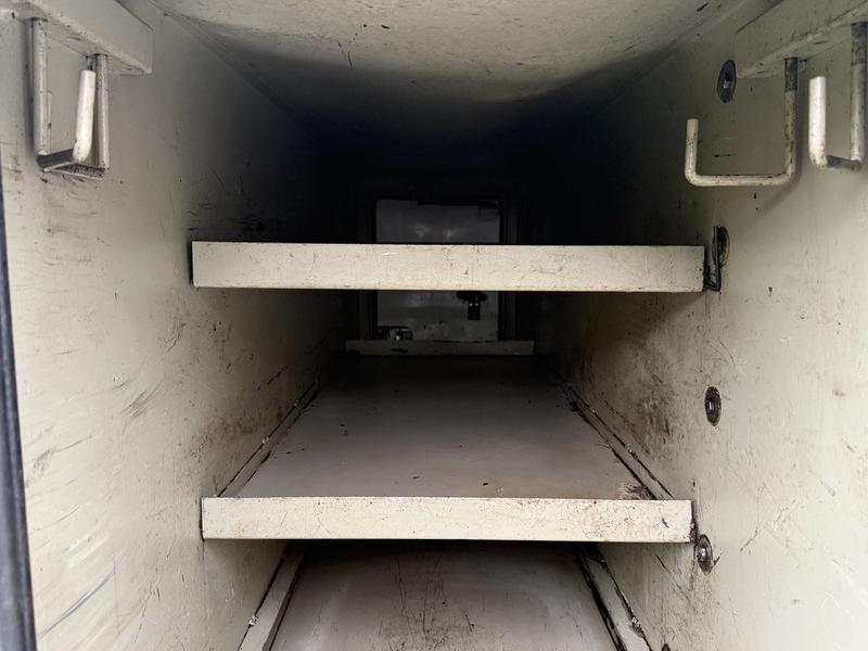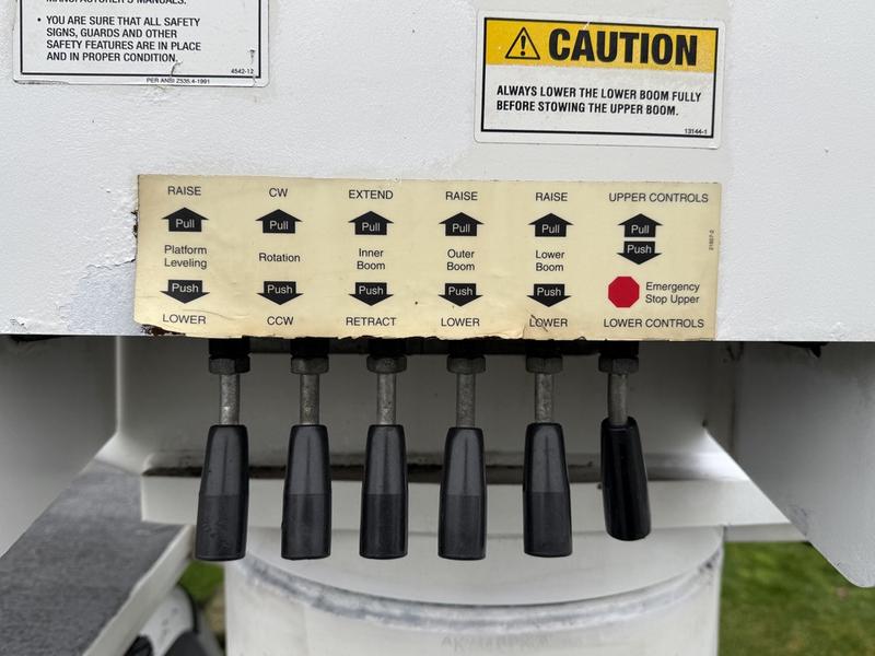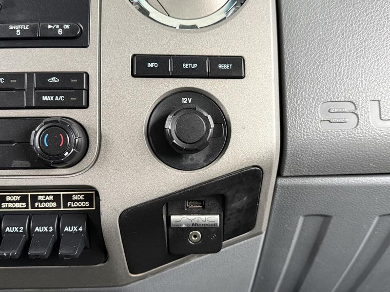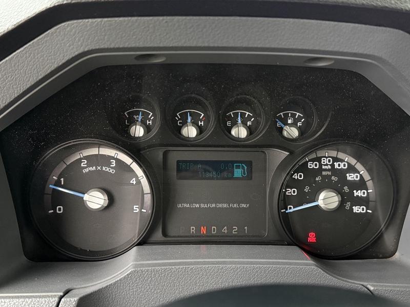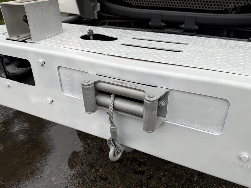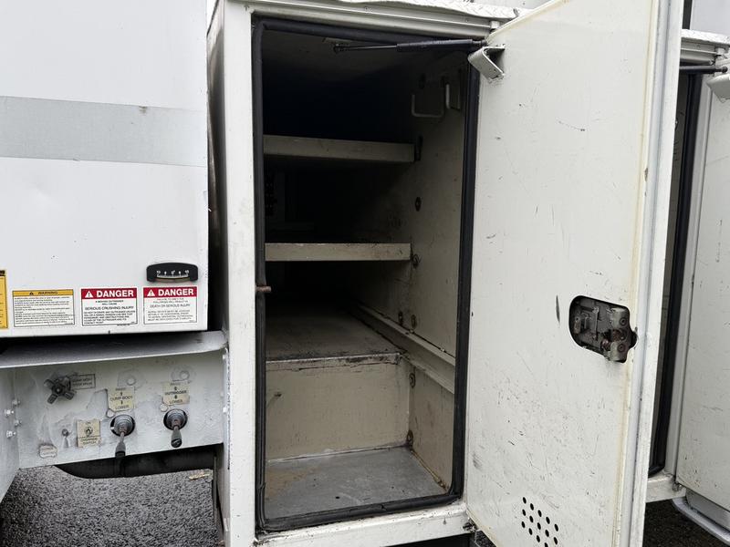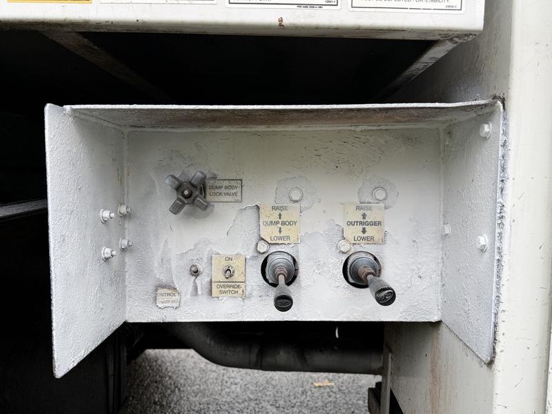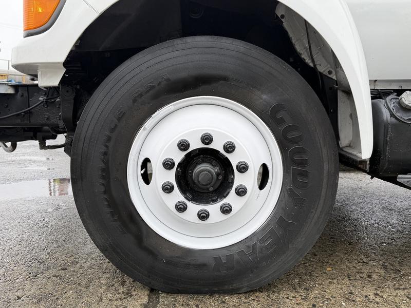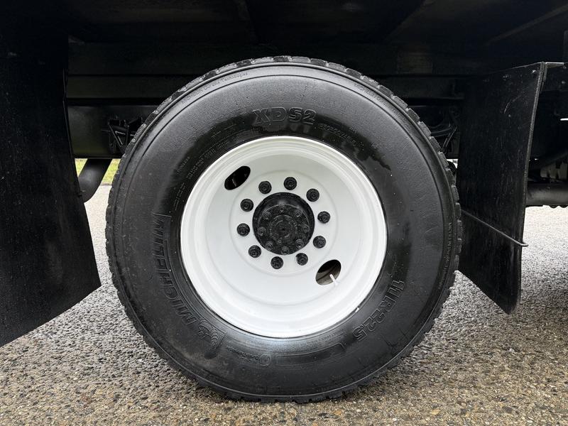 This 2015 Ford F-750 XLT Super Duty Cummins Versalift bucket truck with an 11-foot dump box is powered by a 6.7L 6-cylinder Cummins diesel engine paired with an automatic transmission and rear-wheel drive, making it well suited for commercial utility, electrical, municipal, and infrastructure applications. It is equipped with a Versalift VST-52I aerial lift offering a 52-foot platform height and a 500 lb platform capacity, along with hydraulic outriggers, PTO operation, and a pony engine for auxiliary power. The integrated dump box measures approximately 11 feet long, 6 feet 7 inches wide, and 5 feet high, allowing material transport and dumping functionality in addition to aerial work. Additional features include hydraulic brakes, reverse camera, strobe and body lights, air conditioning and heat, cruise control, AM/FM radio, power windows and door locks, cup holders, and onboard storage. Finished in white with a grey vinyl interior, this F-750 bucket truck has overall measurements of approximately 29 feet 9 inches long, 8 feet 8 inches wide, and 12 feet 4 inches high, with a GVWR of 14,968 kg (33,000 lb).